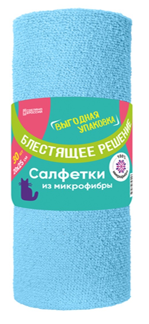 Салфетка из микрофибры 30х30 см. для стекол.Плотность 220 гр/м2. Без упаковки.